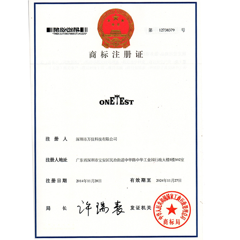 ONETEST商標(biāo)證書(shū) -