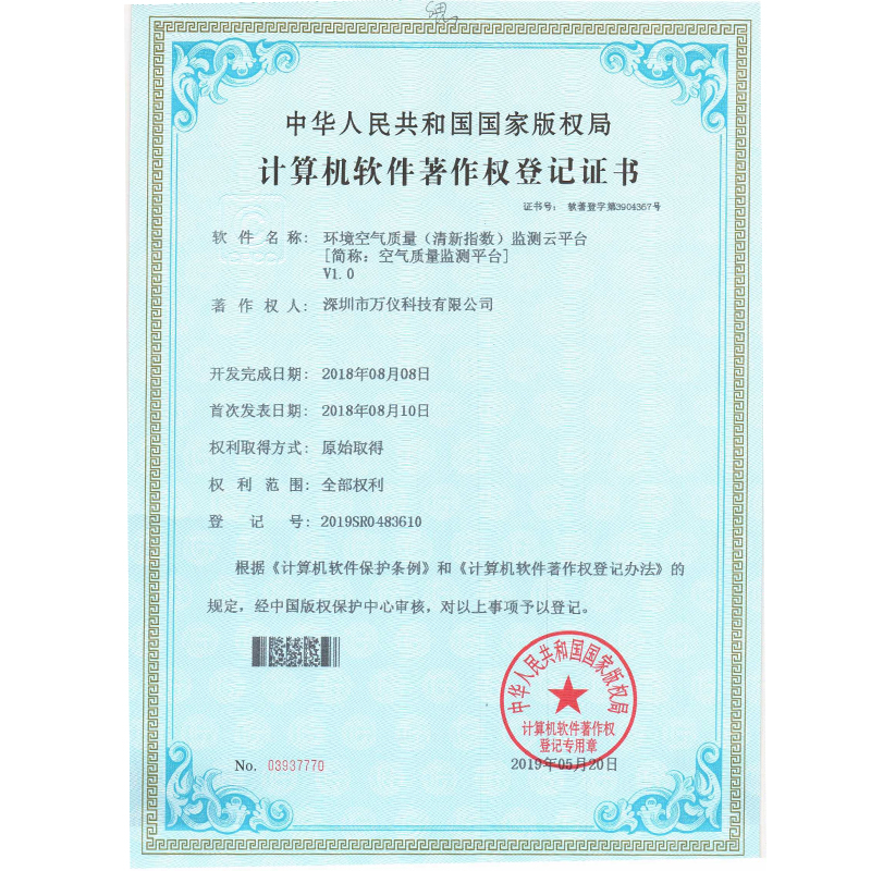 空氣清新指數(shù)云平臺(tái)軟著
