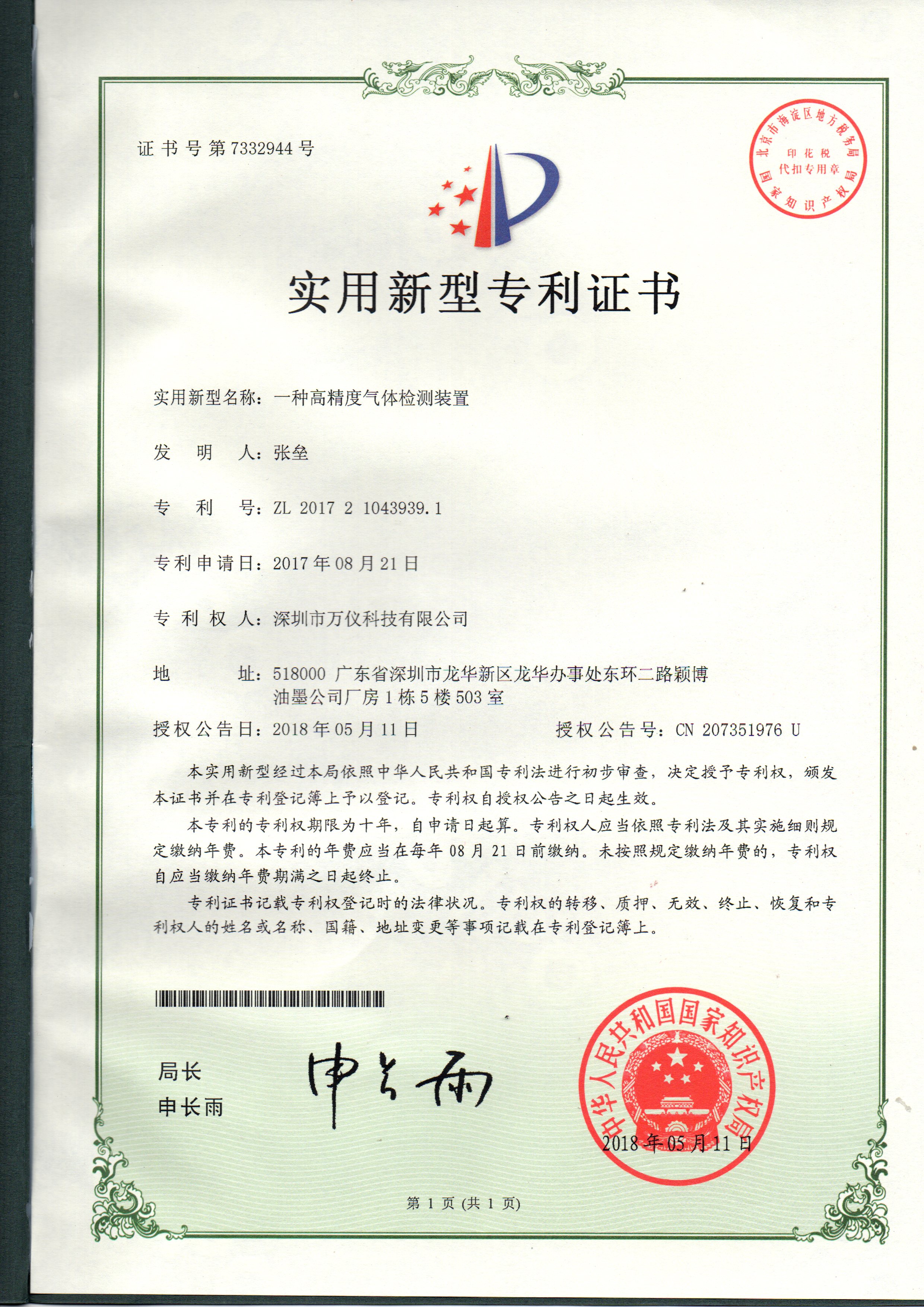 實(shí)用新型高精密氣體檢測裝置專利 -