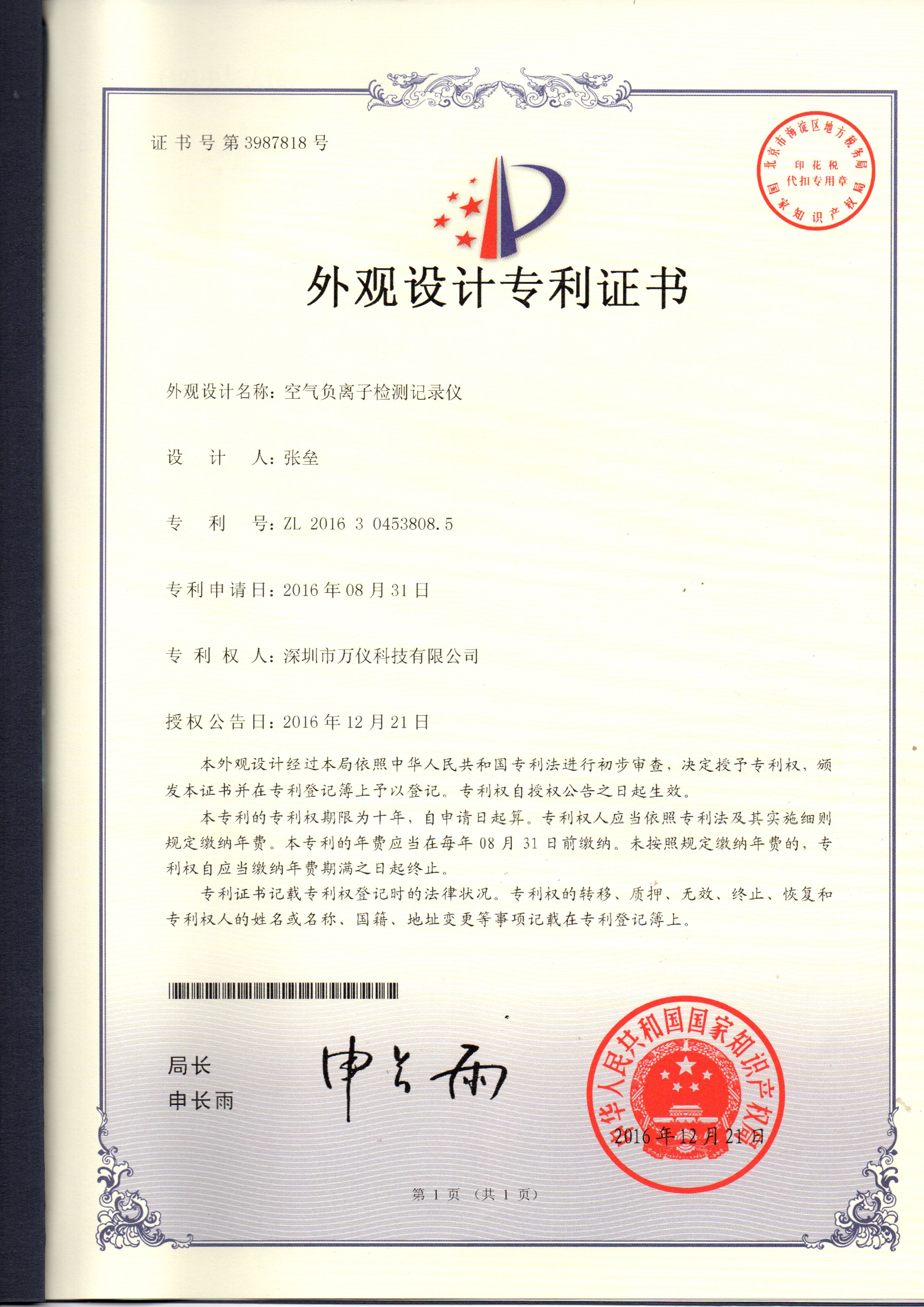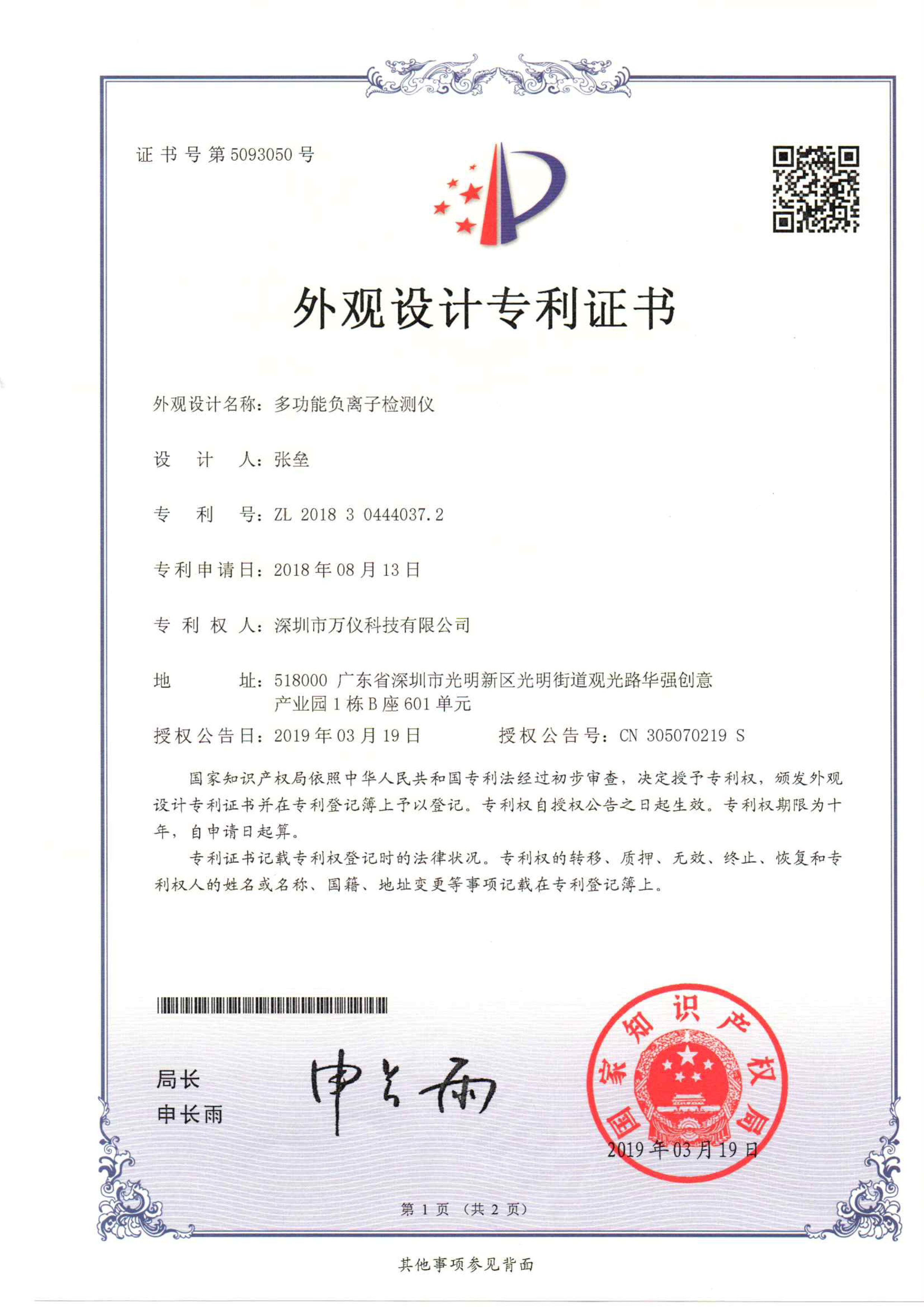 多功能負(fù)離子檢測儀外觀設(shè)計專利 -