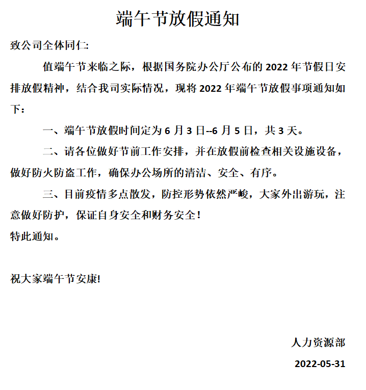 萬儀科技2022年端午節(jié)放假通知
