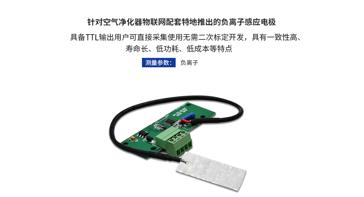 負(fù)離子監(jiān)測(cè)模塊-ONETEST-ITS01負(fù)離子檢測(cè)傳感器模組是設(shè)計(jì)用來(lái)測(cè)量負(fù)離子產(chǎn)生器以及空氣凈化器負(fù)離子的濃度,采用抗干擾性強(qiáng)的標(biāo)準(zhǔn)組件設(shè)計(jì)而成,能夠測(cè)量1萬(wàn)-3000萬(wàn)之間的負(fù)離子濃度。適合負(fù)離子發(fā)生器的快速檢驗(yàn),空氣凈化器裝置和新風(fēng)系統(tǒng)高濃度發(fā)生器的設(shè)備集成。
